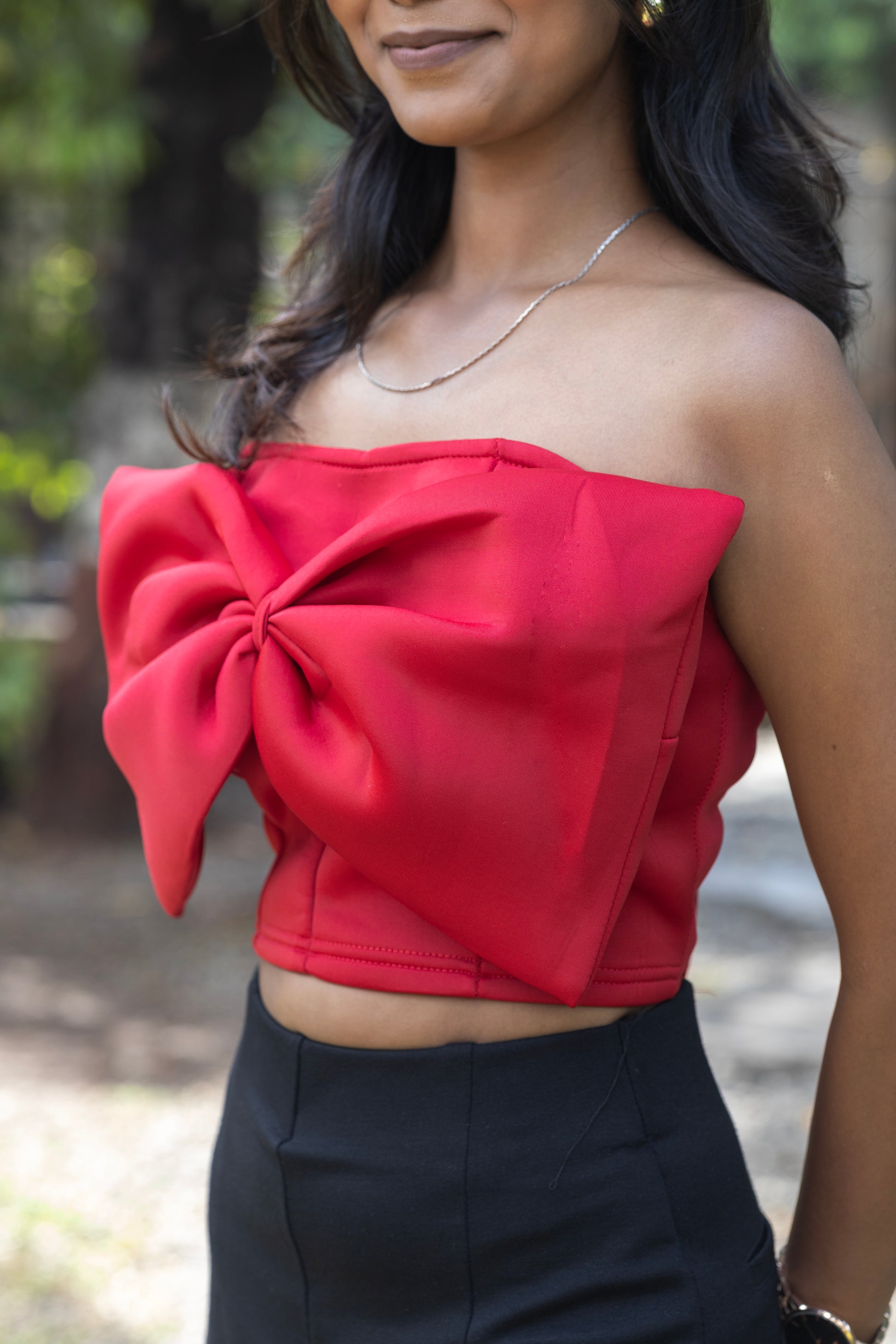 Turn heads instantly with our statement Pink Bow Drama Crop Top.