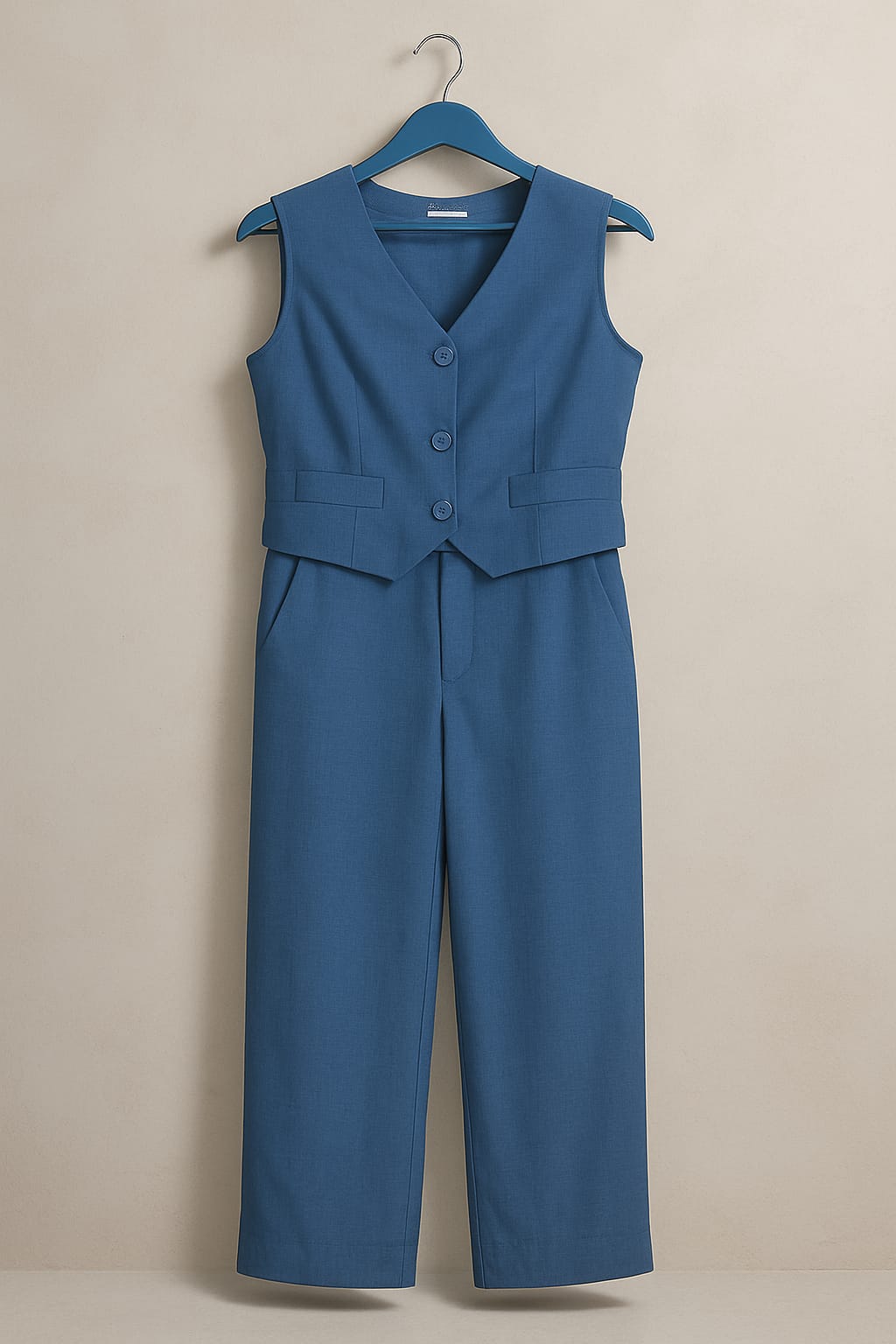 Step into confidence with this vibrant orange co-ord set featuring a sleeveless button-up shirt and flowy wide-leg pants.